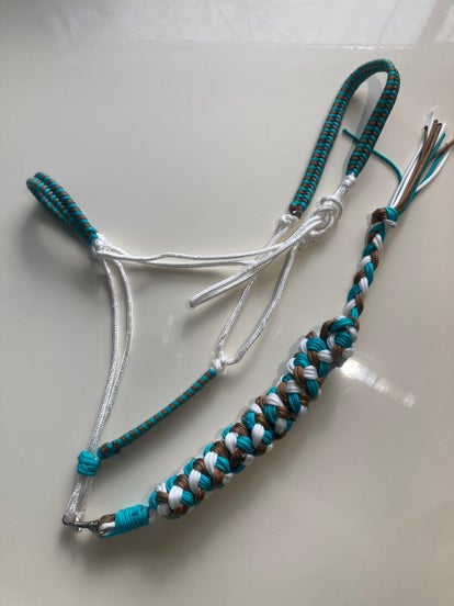 Howdy Cowboys and Cowgirls 🤠 Let’s welcome the new set Texan Turquoise! 🩵🤍🤎 Mixes of gold,blue and white are such a good combination and would look even more better in your tack room 🤔 Get your orders in now for fast shipment! Sets come with 1x rope halter 1x pair of reins and 1x lead rope. Sizing for reins are pony and full and you have a choice of split reins or loop! 🐎